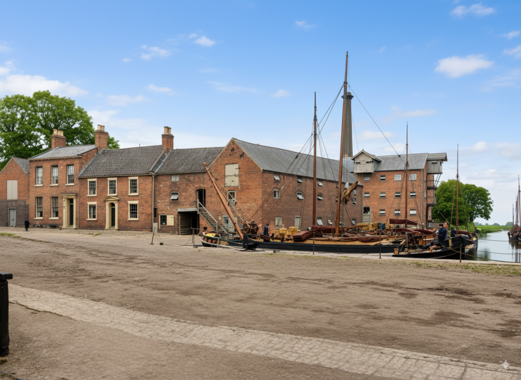 We start sat outside the Blue Bell public house with a view across the road. Keels line the banks.