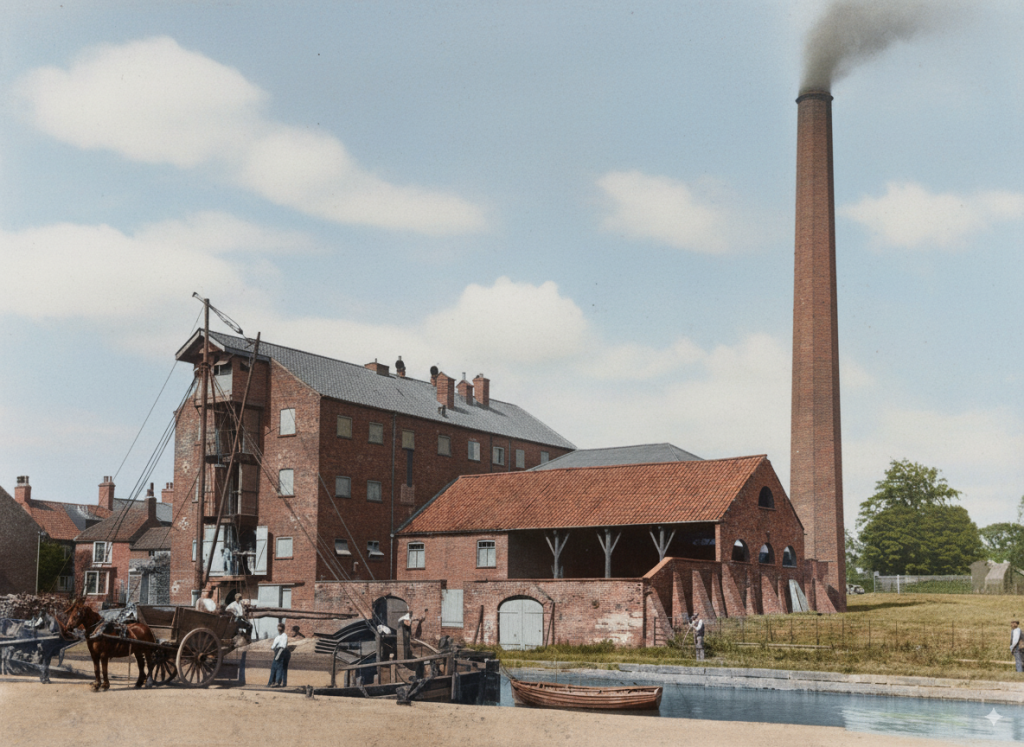 River Head Mill was a bone and corn mill. From the chimney I’m guessing that a steam engine was used, and coal would have been brought up the navigation to help power it.