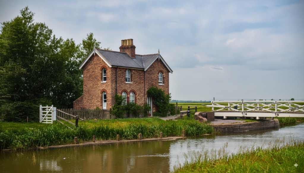 Swing Bridge Cottage, Hempholme. This colourised image shows the bridge keepers house on the ‘new cut’, built around 1811.